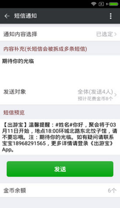 通过出游宝App可进行丰富的活动管理,活动组织方可在App中对活动进行详细描述,可随时发送在线或手机短信通知,也可对参与人进行点名,收费,抽奖等活动,随时与某组人或某个人进行在线沟通,并可了解其所处位置,更好的管理活动及活动参与人;