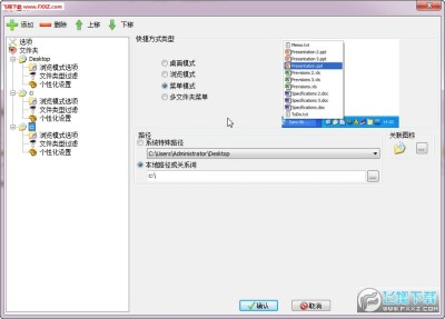 支持多种快捷方式类型:桌面模式、浏览模式、菜单模式、多文件夹菜单模式