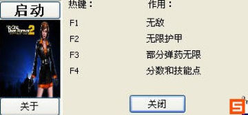F1:无敌F2:无效护甲F3:部分子弹无限F4:分数和技能点