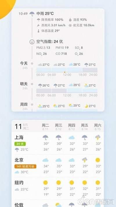 · 天气预报列表:亲友天气、世界城市同屏展示,最关心你的天气应用