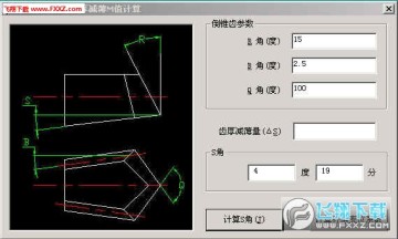 如上图:输入R角、B角、Q角,即可计算出S角(插倒锥齿时插齿机工作台倾斜的角度),按“计算补偿变位系数”即可计算出补偿变位系数并传递到渐开线花键计算主窗口,再按计算就得到了插倒齿时的花键参数。