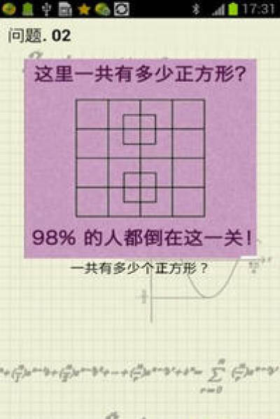 史上最困难的题目是一款极富有挑战趣味的解谜休闲益智游戏,该游戏以完美汉化为中文版模式。游戏题库包含的知识面非常广泛,地理、天问、数学等等。有些是考眼力,眼花缭乱。既然这游戏名字都这么霸气,敢挑战就要做好心理准备。