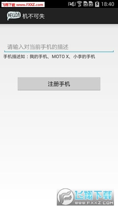 如果你是第一次为该手机安装,请输入对该手机的描述,然后注册手机。