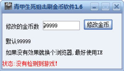 青甲生死狙击刷金币软件是一款免费的生死狙击游戏刷金币辅助工具,此款辅助能够帮助玩家免费刷取大量的游戏金币。软件方便简单,玩家只需要输入金币数量即可开始刷取金币,默认金币数量为99999。