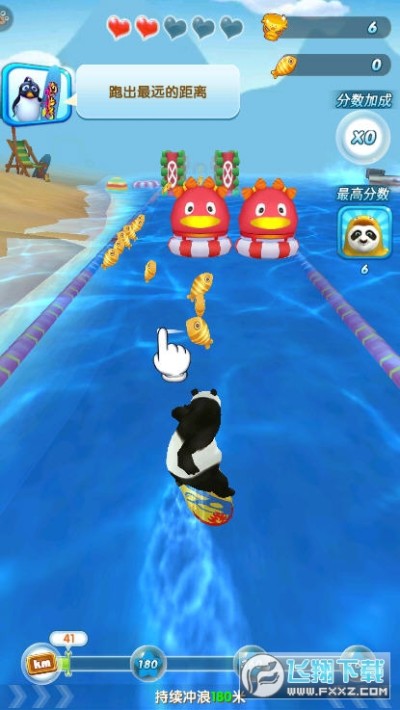 功夫冲浪是一款制作非常精美的滑板题材休闲跑酷类手机游戏,在游戏中我们需要控制可爱的熊猫在海上冲浪,同时捕捉一路上看到鱼类,你需要小心路上的障碍还有后面追杀的大白鲨!感兴趣的小伙伴快来下载体验吧!