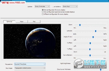 以 Windows 版本的 DesktopEarth 设置页面为例,可以让地球以各种角度在你的桌面呈现:
