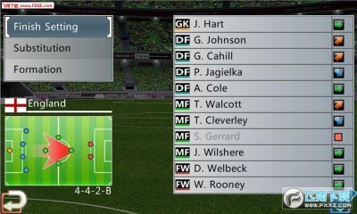 换人:针对首发阵容进行调整,每名球员都有能力盘和详细数据(GK为守门员 DF为后卫 MF为中场 FW为前锋)。按照闪烁方向键进行下拉和左右切换。