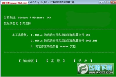 2、"自动修复"自动判断和系统启动有关的条件并自动修复程序支持的盘符上的NT系统启动,无需用户手工干预