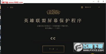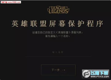 点击设置的话,就会启动Riot官方的屏幕保护程序(点开后可能程序会处于黑屏状态,不过不用担心,这只是加载有点慢而已,大概稍微等待20秒左右即可,然后进行应用程序下载),等程序加载完之后,先随便输入一个名称,点击下一步。就可以挑选你自己喜欢的壁纸了:
