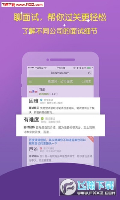 看准网app是一款能够帮助求职者们了解不同公司的面试细节,帮助你轻松过关的免费手机求职软件。通过老鸟的匿名分享,可以轻松的获取真实的职场信息!