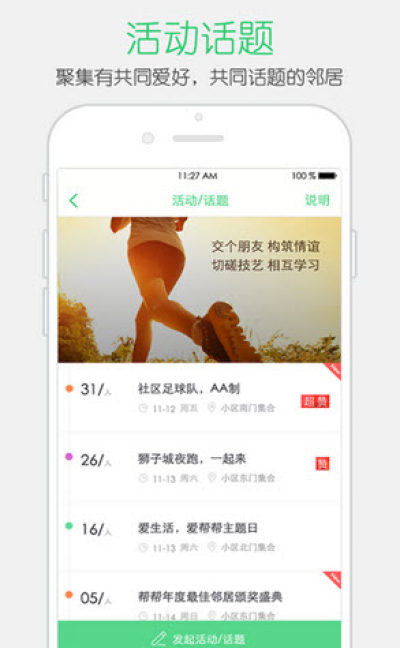 4.活动话题:聚集有共同爱好,共同话题的邻居。