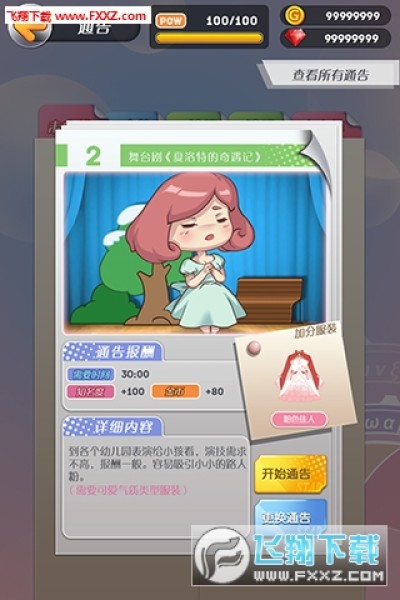 穿上美美的服装,好好打扮自己,是每个少女都希望的,游戏准备了上百套服饰,各种搭配等着你。而服装也是高效完成通告,获得更好奖励的唯一途径,只有穿上符合通告要求的服装,才能获得更好的奖励哦。