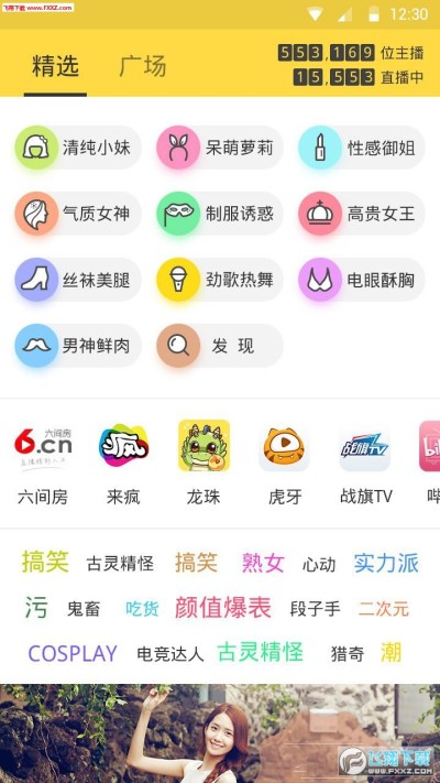 2、创意分类:首创按主播颜值特点分类,萝莉御姐、男神鲜肉,总有你喜欢的款。