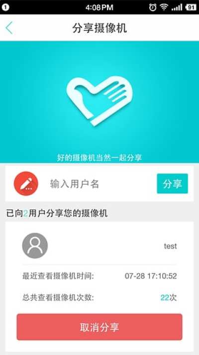 —分享功能:不光设备可以分享给其他用户查看直播画面,抓拍照片也可以通过微博、QQ的方式分享给好友。