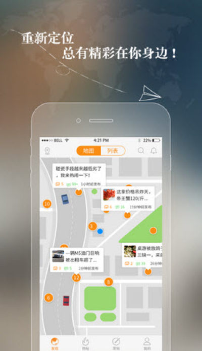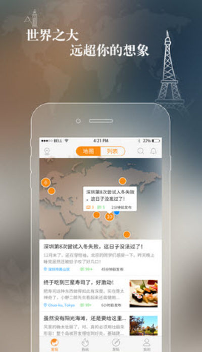 1.一切原创内容都将在一张世界地图上分布呈现2.便能迅速知晓家乡正在发生的奇闻异事,下一个旅游目的地的奇特景观……3.寻找新朋友,发个贴即可,有图有位置,信息更真实