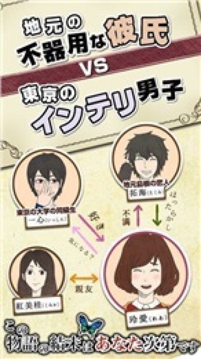 游戏和常规的放置套路类似,玩家需要手机屏幕上的一点小小的蝴蝶效应推动故事发展;因为操作比较简单,所以更适合使用碎片时间或者闲暇时间进行轻松的游戏;玩家扮演的女孩需要在老家的男友和东大同级生中做出选择。谁才是适合自己的那个白马王子? 就由你来决定。