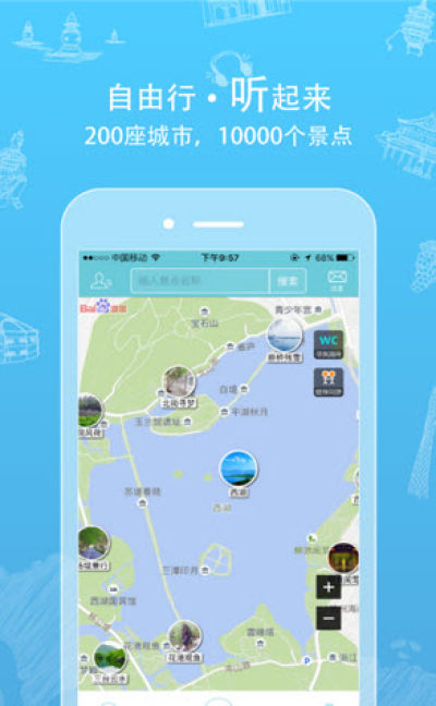 一个景点一个故事,专业录音棚女主播人声录制,保证优质的听觉体验。边游边听,改变现有自由行走马观花的旅游体验。现已覆盖全国各级旅游城市和景点,且保持每周定期上传新景点内容,目前尤以杭州市体验为佳。