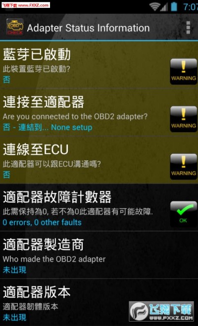 *工程對平板設備,如摩托羅拉 XOOM,戴爾條紋,和三星銀河標籤可以在任何車輛支持OBD 2標準(2000年後建成大部分車輛,但車輛可以追溯到1996年) - 如果有疑問請與您的製造商的第一個或尋找“OBD2”上寫上一個大的白色標籤在您的工程車輛發動機艙由福特,通用/沃克斯豪爾 /歐寶,克萊斯勒,奔馳,大眾,奧迪,捷豹,雪鐵龍,Peugoet,斯柯達,起亞,馬自達,雷克薩斯,大宇,雷諾,三菱,尼桑,本田,現代,寶馬,豐田,座椅,道奇,吉普,龐蒂亞克和更多的車輛讓,歐洲,美國,遠東等一些車輛的ECU可以支持更多/功能比別人少。該應用程序需要一個藍牙適配器 OBD2工作。該適配器是小型和插入的診斷插座上車這使您的手機訪問。