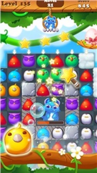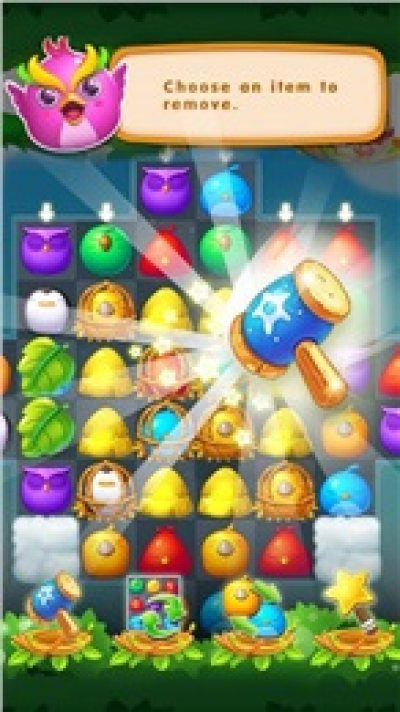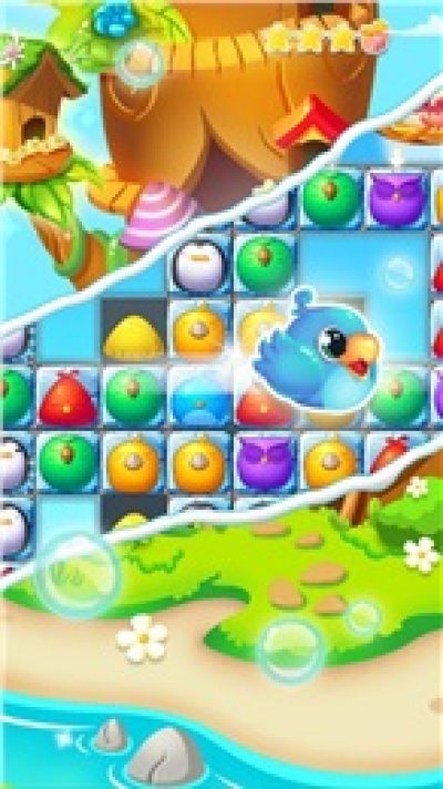 游戏玩法是简单的对对碰,和同类游戏没啥区别,游戏体积小,背景音乐也是很赞!令人上瘾的消除玩法,匹配三只相同的小鸟,打败怪物,保护鸟蛋。