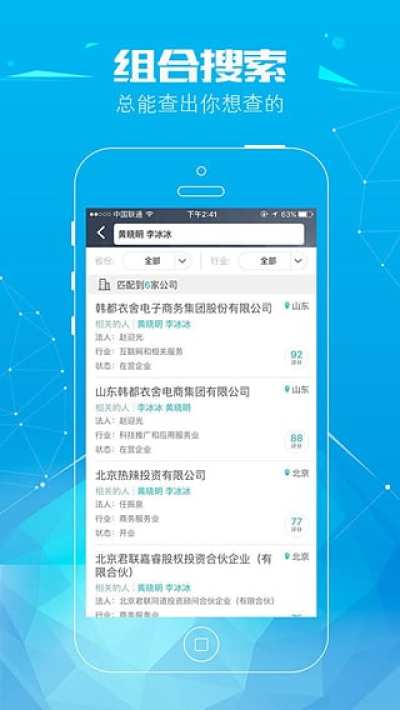 1.全量企业信息查询 支持多种关键词查询,无需任何注册、验证码,向用户提供高质量的企业信息查询服务。
