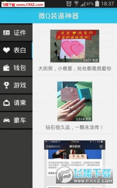 微Q装逼神器,微信QQ装逼神器手机版,素材多多,可以生成各种搞笑证件、钱包、游戏、表白等,有需要的朋友可以下载使用。