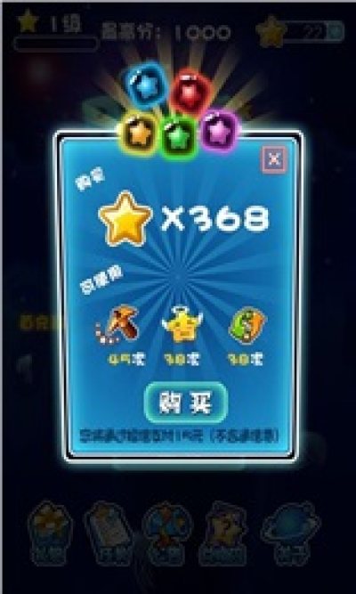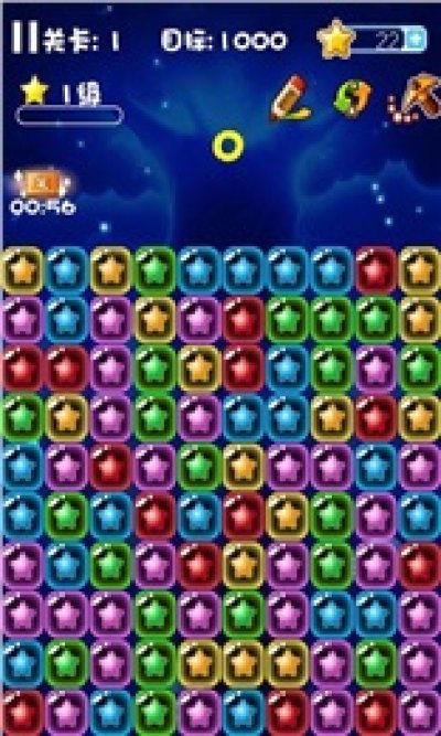 简单的游戏操作,跟前作也半斤八两,只需点击屏幕中两个或者两个以上相同颜色相同类型的星星,便可轻松达到消除的效果,当然尽可能一次性消除星星的数量越多,分数就越高,每个关卡都有一定的任务要求,达到任务要求还会出现特殊技能,闪闪发光的帮助大家消除剩余星星,完美过关。