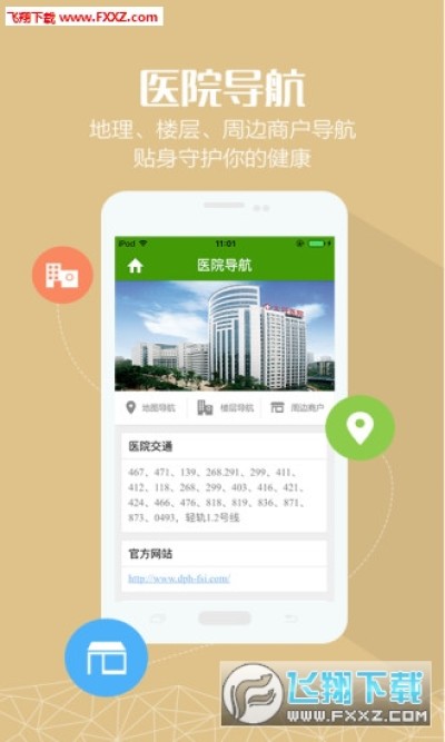 院外线路导航、院内科室分布、周边商户一网打尽;