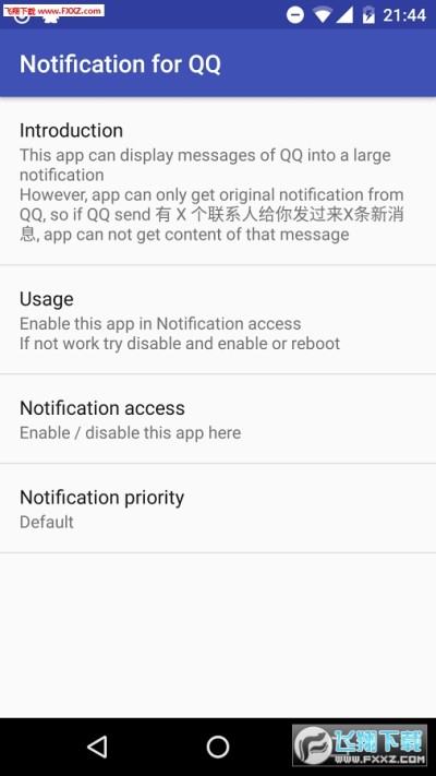 由于应用只能获取QQ的通知内容,因此当QQ的通知内容是“有 X 个联系人给你发过来X条新消息”时,应用只能展示先前的通知内容。