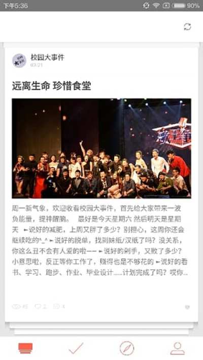 ①个性内容推荐:校园版的今日头条,记录你的阅读喜好,定制你的校园资讯,精细化推送给你专属的校园资讯,每一次推送都为你所想!