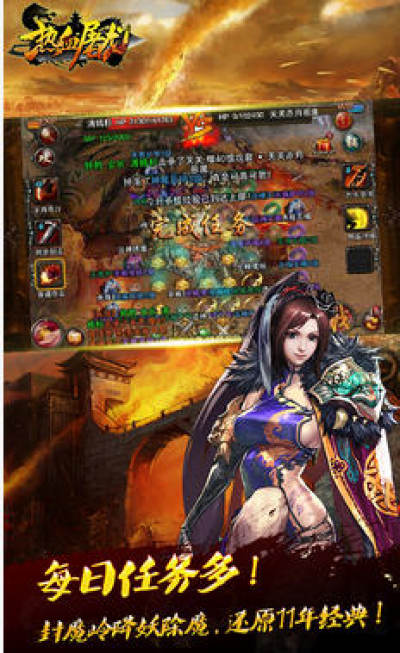 《热血屠龙》是历经1年调查搜集上万名用户建议而打造的传奇类手游,在1.76版本的经典画面、玩法的基础上,针对手机的操作玩法做出了每日任务系统、挂机系统等,上班的时候可以拿经验,坐车的时候可以拿经验,入厕的时候也可以拿经验,完全不担心被别人落下等级。多种多样的地图、副本,即时PK,千人同屏王城战,多样的玩法带你激情2016。