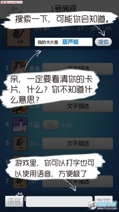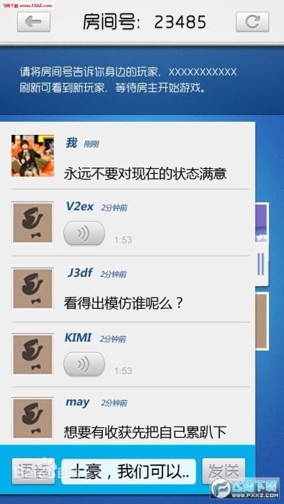 2、开始抽签。玩家依次传递手机抽签获得身份词(玩家可以设定自己的昵称和照片)。