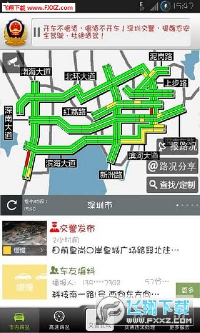 2.市内路况:提供全市各主干道、CBD、关口等区域的实时交通信息,通过简图实时呈现道路拥堵信息,交通拥堵情况,一目了然,更有交警发布和车友爆料的实时路况信息,让您出行无忧;
