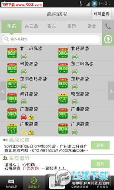 3.高速路况:提供全省72条高速公路的实时路况信息,高速路况通过简图呈现道路拥堵情况,更有权威部门高速公告和车友高速路况爆料信息,让您提前知晓高速信息,节假日提前规划最优驾车路线,畅通无阻;