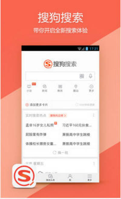 集成美食、电影、酒店、团购、足疗、家政等众多生活服务,生活琐事搜狗搜索帮你一键解决。