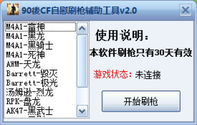 90後CF自慰刷枪辅助工具,免费的CF自慰刷枪软件,主要可刷取雷神、死神、黑龙、黑骑士等稀有枪支,喜欢玩CF的朋友可以下载使用。