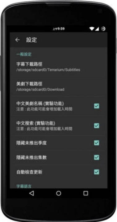在 【設定】 中開啟 【中文搜索】 功能後,即可使用美劇的中文譯名來搜索,十分方便~