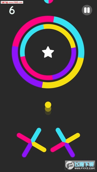 颜色转变Color Switch中文破解版是一款非常适合打发时间的休闲游戏,游戏玩法也比较简单,玩家要控制小球前进,小球会遇到各种由不同颜色组成的障碍,小球只能通过与自己颜色相同的障碍。