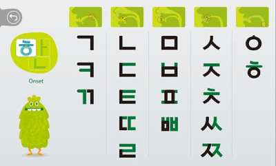 2 )乐趣:节奏韩文游戏结合发病辅音,元音和辅音结尾,使节奏和混合韩文的发音用户。这表明,当一个字完成的漫画角色动画。
