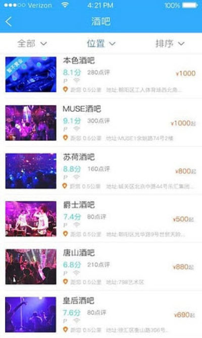 【即时定位功能】用户打开去耍APP,点击自己喜欢的夜店类型,根据您所处的区域搜索附近的夜店,并提供卫星导航。