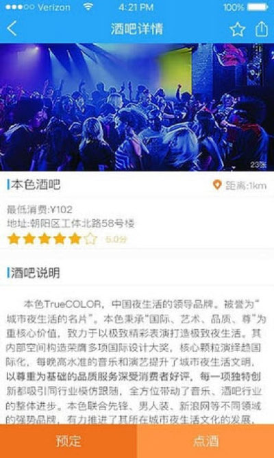 【在线即时预订】用户可通过本平台在线预定位置、酒水套餐和酒水单点,更可以及时了解店内台位、包房空置率和演艺活动信息。