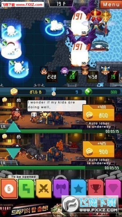 作为放置类,你基本上看着就好了,有钱就升升武器和技能,训练自己的英雄等级,让地下城探索速度更快......但是要小心奴役区那边,被抓的怪物是有可能逃跑的,别被他们跑了结果上了头条哦。另外,游戏一开始是英文,可以在设置里调成繁中。