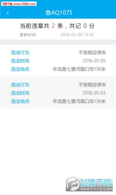 违章查询——详细展示车辆的违章时间、地点、罚款、扣分、处理等状态。