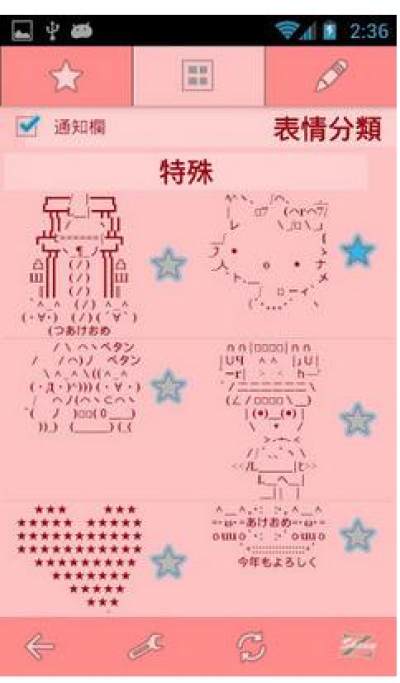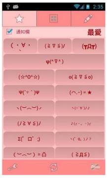 颜文字表情符号当聊天时,突然需要一个能够代表自己心意的文字型表情符号时,这个应用将会非常适合您使用^^表情符号工具(顏文字)主要提供以下功能:1.提供各式各样的表情符号,并且可透过线上更新按键新增表情符号.