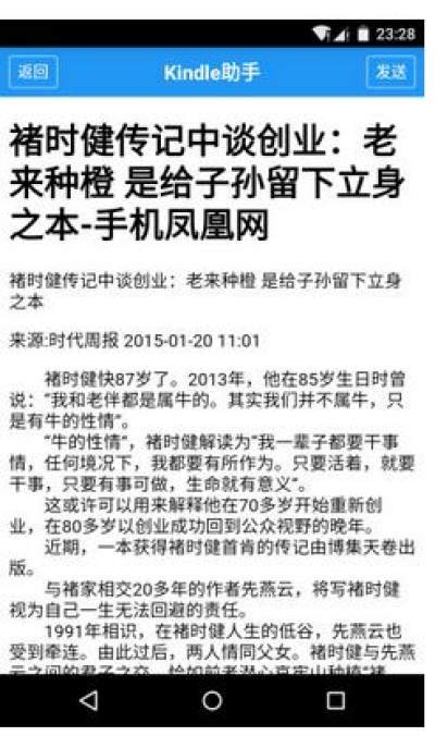 Kindle助手允许你将看到的精彩网文一键发送到 Kindle,以供其后在 Kindle上进行深入阅读。此外,Kindle助手 还支持多页合并发送和简单的编辑功能。