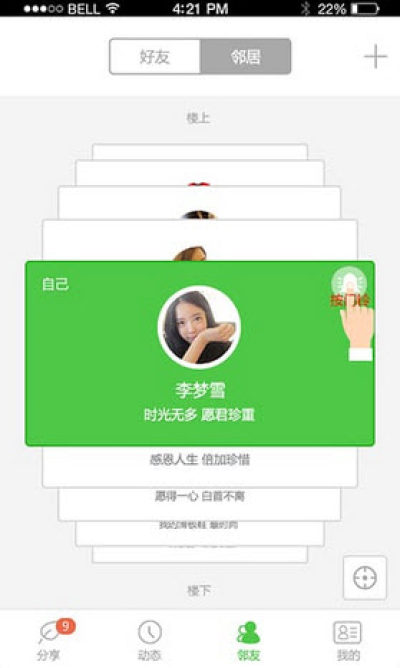 通过赞和评论与邻居互动;