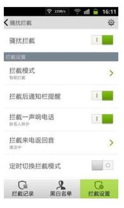 5. 骚扰拦截:灵活的设置,将所有骚扰电话、短信置之于外,还您一片宁静。