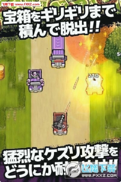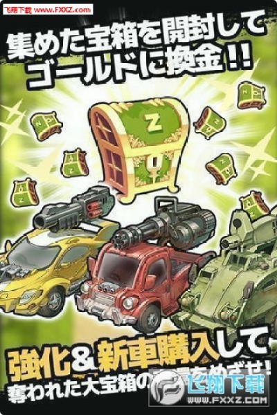 游戏中玩家将乘坐在战车内,消灭地图上不断涌现出来的僵尸,以取得地图最深处的宝物为最终目标。通过消灭僵尸获得的金币亦可用于强化载具和更换载具武器,当然也可以直接购买更强力的新载具去更爽快地消灭大波僵尸。