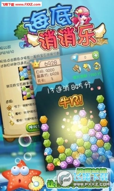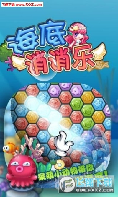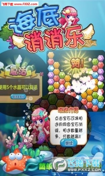 《海底消消乐》是一款适合全年龄玩家的消除益智类游戏,游戏规则简单,玩家只需点击两个或两个以上相连的同类宝石就可将其消除,并获得分数!相连的宝石越多,获得的分数越高!