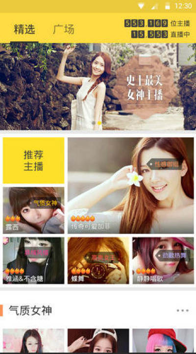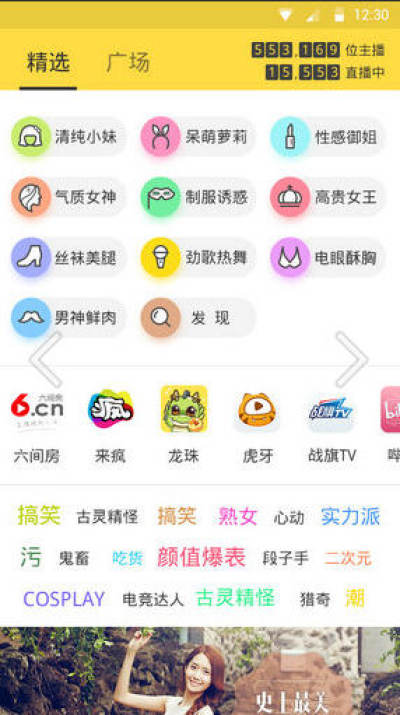 2、创意分类:首创按主播颜值特点分类,萝莉御姐、男神鲜肉,总有你喜欢的款;