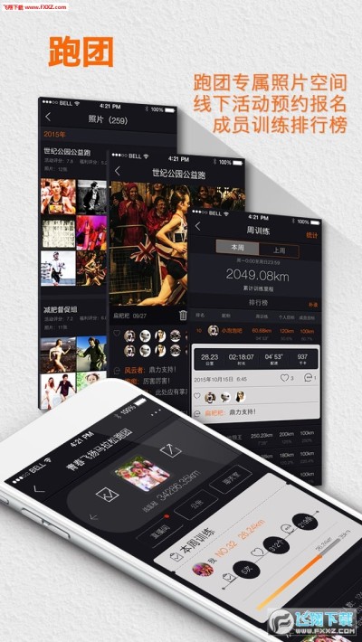 [跑团]:你可以在这里组建并管理自己的跑团;我们将为你提供专业便捷的跑团管理方案:日常训练打卡;线下活动(预约/报名、签到、照片管理);线上赛事(报名、成绩统计、展示),还有公告管理、专属聊天室、直播间哦。你也可以查找附近跑团,加入活动,体会一起奔跑的乐趣!